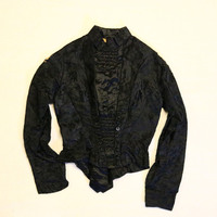 - Black floral brocade bodice.