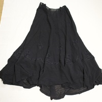- Black crepe skirt with shamrock-shaped ribbon trim.