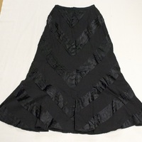 - Black wool skirt with diagonal satin ribbon stripes.