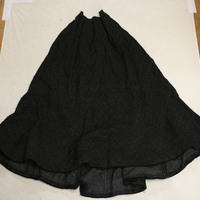 - Black skirt with woven diamond pattern.