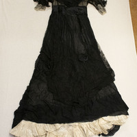 - Black chiffon evening gown with cream silk lining and beading on bodice.
